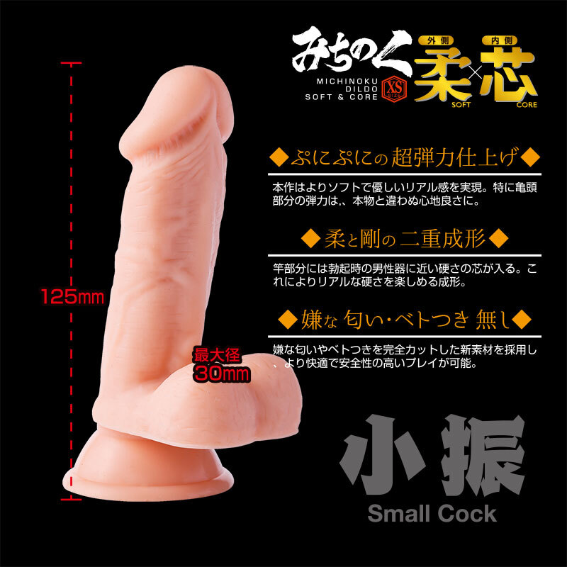 The defining feature of this “Michinoku Soft Core Dildo” is its dual-layer construction: “soft on the outside, firm on the inside.”