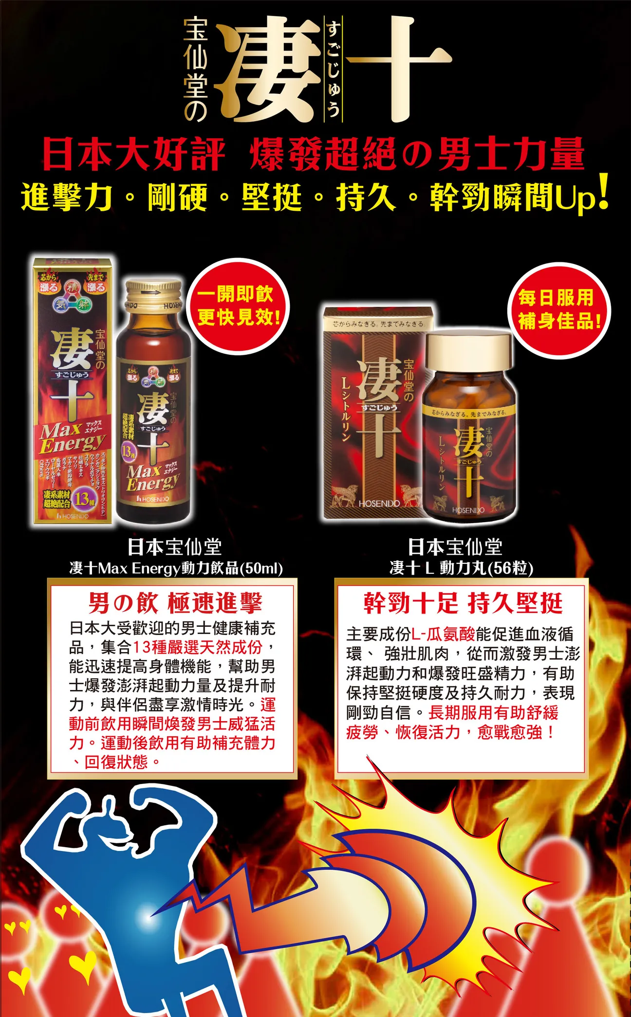 日本製造,凄十L動力丸的主要成份為L-瓜氨酸,有助促進血液循環、強壯肌肉,從而激發男士澎湃起動力和旺盛精力,有助保持堅挺硬度及持久耐力,表現剛勁自信,與伴侶盡享激情快感。