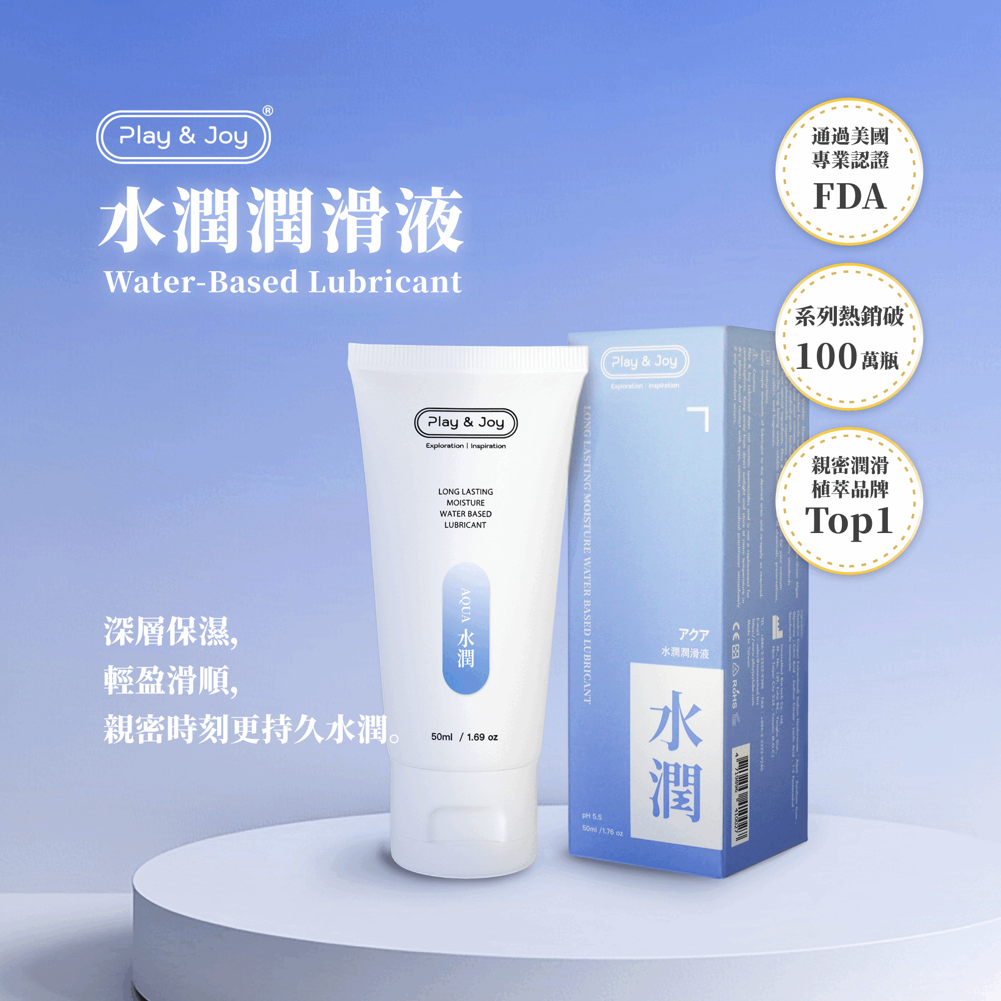 Aqua 水基個人潤滑劑採用獨特的 pH5.5 配方,可模擬人體的自然分泌。
